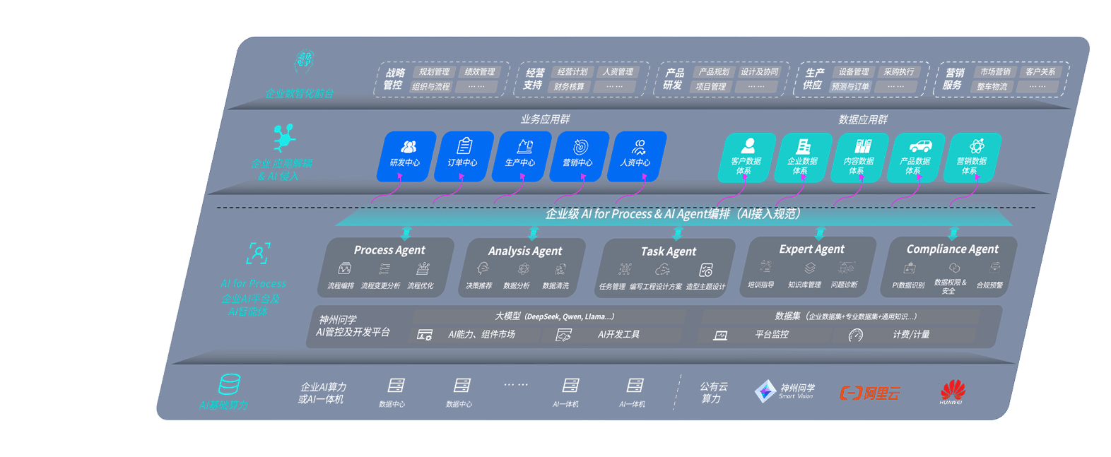 壹号平台问学智车解决方案是一套基于AI技术的汽车行业智能化系统,,,覆盖从底层算力到顶层AI应用的全栈方案。。。方案由算力层、、、模型层和应用层组成:算力层,,方案支持多种一体机配置,,,,具备云端灵活部署、、多云适配以及动态优化计算资源的能力;模型层,,,,壹号平台问学平台版提供了企业级AI应用一站式构建与管理平台,,,支持基于后训练强化技术的汽车企业专属模型的训练、、、、评测和运营;应用层,,,,壹号平台问学DeepSeek版提供包括超级员工、、、智能招采、、、智能营销、、、、智能客服、、、AI for BI等一系列解决方案,,,,可助力汽车行业实现数字化转型,,,让管理更智能、、响应更敏捷。。