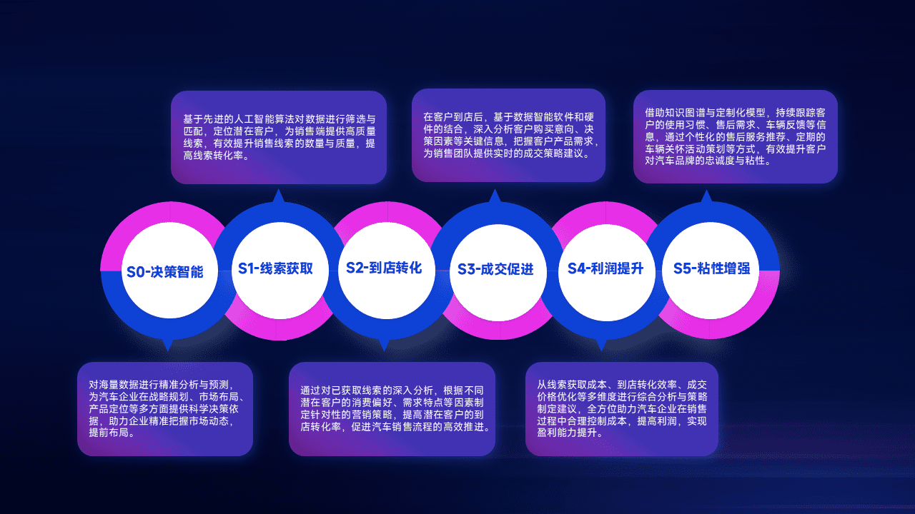 通过拓宽潜在客户来源、、优化线索分配并提高到店转化率,,以增强销售效率。。。同时,,,,利用线索数据不断优化分析模型,,有效提升转化率,,,,扩大营销影响力。。